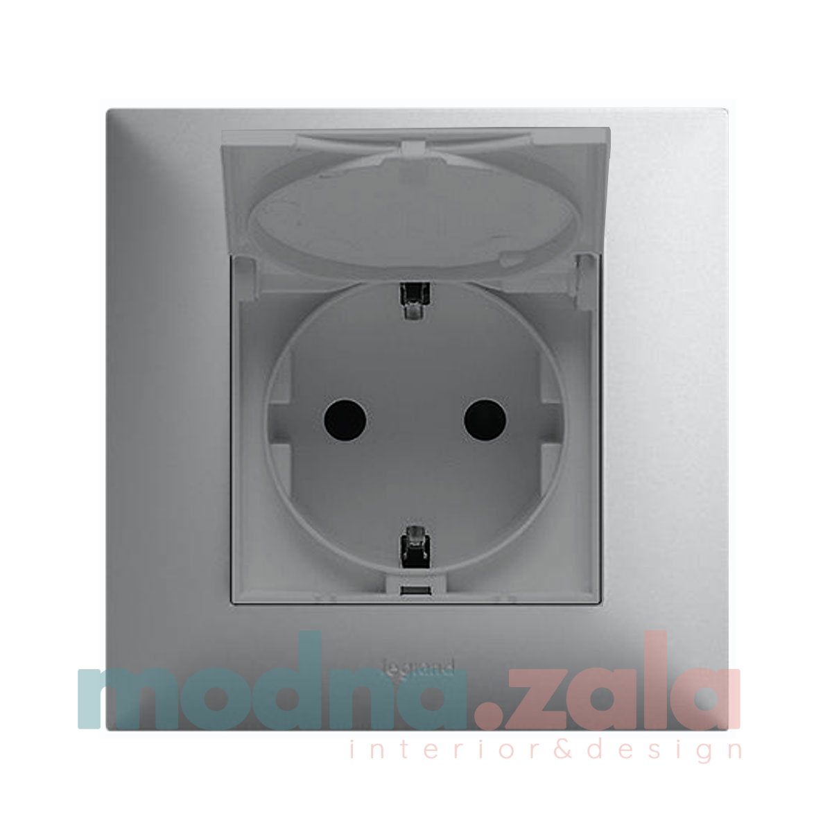 - Розетка с заземлением и с крышкой SE Asfora EPH3100161 алюминий